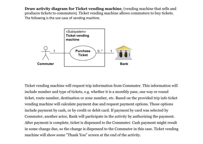 Solved Draw Activity Diagram For Ticket Vending Machine Chegg Com